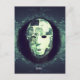 En hemlig, surrealistisk bild av en sprickmask som är upphängd i en mörk, erealvoid. Masken är trasig, lapptäcket yta återspeglar isig struktur, kontrasterad med en farlig monokel och en enda grönt, vilket framkallar en kryptisk koppling till osynliga krafter. Under den, stöter det enkla men kyliga ord "Hej" inbjudan på oroligheter med det okända.