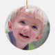 Den här söta pojkens personlig runt keramiska fotodekorationer har ett slut på det här världsrymdetemat! Bakgrunden har en mörk färg med många gult-, vit- och grått-stjärnor i bakgrunden. Det finns ett rymdskepp på grund med en orange och en röd planet med ringar i toppen. På högerna kan du enkelt anpassa namn och år. På baksidan kan du lägga till ett eget foto.