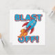 Vår Blast Off-design är en underbar för barn av alla åldrar som rymmer och raketar i kärlek, har en blå och röd raketfrakt med flammande avgaser och text som lyder Blast Av! Frakt T-shirts, bibs, filtar, kort, klistermärken, mugg, påsar, kuddar, väggur och mycket annat!