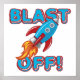 Vår Blast Off-design är en underbar för barn av alla åldrar som rymmer och raketar i kärlek, har en blå och röd raketfrakt med flammande avgaser och text som lyder Blast Av! Frakt T-shirts, bibs, filtar, kort, klistermärken, mugg, påsar, kuddar, väggur och mycket annat!