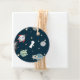 Primärfödelsedagsfavorittaggar med ett rymdtema. Bilden har några planeter, stjärnor och en raket. Illustrerad och designad av Patricia Alvarez.