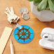 Detaljerade Fraktaser av klassisk vintage Hjul eller Helm, underbara för båtägare och sjömän med havsblå bakgrund.
