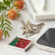 Fraktallager bygger upp denna stiliserade juldesign. En dämpad röd bakgrund, ett spetsigt grönt träd, gyllene stjärnor och snöflingor som hänger från en rad röda och gyllene pärlor och tre röda bollar med en virvlande gyllene design hänger framför.
