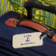 En blå fraktas ankare och kaptenstext lägger lätt till perfekten namn för sjömän och båtmän.
