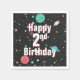 Raketets fraktaser, kometer och planeter i svart rymden för barnets andra födelsedag