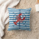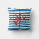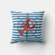 Den ljusa dekorativ kudde för blått- och vithorisontalmönsterdesignen presenterar ett nautiskt tema med en fraktkompass och hummer på varje sida.