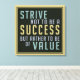 "Sträva inte efter att bli en framgång, utan snarare att vara av värde". Se min butik för fler motiveringsartiklar.