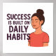 Ett motiverat poster för studenter och kvinnliga företagare, företagsägare. Citatet: Lyckades byggs på daglig habbis. Bild av en kvinna som mediterar