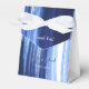 Bröllopunktslådorna har en förbluffande blå vattenfärgspenseldragskonstruktion. Övertoningseffekten skiftar från djup marin blå till ljusblå toner, vilket ger en känsla av elegans och djup. I överkanten är lådorna förankrade med ett vitt satin-band, vilket förbättrar förpackningens sofistikerade utseende. I designen ingår ord "Tack!" i elegant, flytande skript, tillsammans med parets namn och datumet i bröllop, som skapar en personlig touch. Denna moderna och konstnärliga utformning gör att dessa tjänster blir en perfekt för en snyggt och ett minnesvärt bröllop firande.