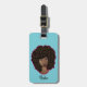 Den här bagagemärkningens design har "Queen, fenomenal, vacker, smart, magisk, chef, kärleksfull, sexig, oberoende, rolig, kreativ och stark" kapslad i sitt afro, med färgstarka halsband, rosa gräns och turkobakgrunden.