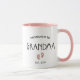 Denna två ton, rosa och vit, mugg visar utformningen "FRÄMJAD TILL GRANDMA" i ett vackert FONT, tillsammans med rosa baby fötter och "EST"-år. Det är en idealisk gåva till morföräldrarnas dag, jul, födelsedagar eller till och med som ett vackert tillkännagivande av graviden. Den blivande farmor kan beskatta denna keepsaké för all framtid!
