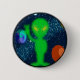 En främmande danande som fredsteckenet med hans räcker. Ut i utrymme, l med planet och stjärnor bak honom. Ett av planen är jord. statisk elektricitet