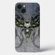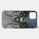 Metallisk främmande skalle för silver med gröna huvudspiken och randiga tentakelbihang på en grungebakgrund.