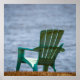 En ensam, väderbiten stol sitter vänd mot en stor, lugn vattenmassa. Scenen frammanar en känsla av frid och isolering.