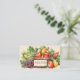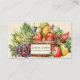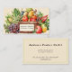 Söt av basket, fylld med frukt och grönsaker. Allt naturligt bekämpningsmedelsfritt affärskort med en vattenfärgad bild av en basket fylld med druvor, äpplen, maj, morötter och plommon för färskvaruföretag.