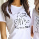 Den moderna och avslappnad chicens svarta kalligrafskript "Future Mrs", kvinnans möhippa bröllop T-skjorta har anpassningsbar som kan vara personlig med brudens gifta efternamn. Perfekt för bruden till bäran på bakteriepartiet och bröllop helg!