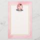 Stationär papper med texten: Framtida fru, med personligen namn. Illustrerad med en brun brud brud brud brud i lycklig. Hon bär en vit bröllop-grav och håller en bukett blommor med en söt slöja i håret. Ställ in en rosa oval cameo ram med ett skalat gräns. Bakgrunden är en vattenfärgsbild i rosa med en rektangel med grädda färgader överst som har en gräns i guld färgad.