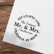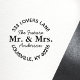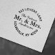 Meddela dina glada nyheter med denna eleganta självbläckande stämpel. Med en vacker scriptfont och orden "Framtida herr och fru" är denna stämpel perfekt för att personifiera "spara datum"-kort, förlovningsfestinbjudningar och tackkort. Lägg till en touch av sofistikering och spänning till din bröllopsbrevpapper med denna charmiga design.
