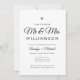 Denna minimala förlovningsfest inbjudan visar sig genom sin enkelhet. Vackert skript med blomstrande texter lyder "Framtiden, herr och fru" vid sidan av era personliga firande-detaljer i modern typografi. Ovanför sitter ett känsligt faux-guld-hjärta i ro.