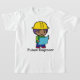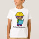 För ingenjör under utbildning. Pojk med lila hår i en gult, hård hatt med blåavtryck. Med ord "framtida Ingenjör".