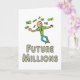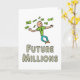 Framtida Millionaire-design säger "Millions" eftersom "Millionaire" är lite för lång tid för en anständig grafik. Utformningen visar en rik som slänger sina pengar och klickar på sina klackar i firande om framgång och rikedom. En framtida miljonär i skapar!