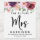 Eleganten "Framtidens fru", personlig vin, märker sin möhippa. Blommigtarna för burgundi, rött och rosa och gräns överst och "fru" är skrivna i ett stort snyggt skript. Du kan personifiera med hennes framtida gifta namn, första namn och duschdatum.