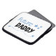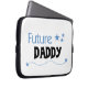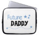 Pappas framtida knappar och kartonger, tallrikar, mugg, bärbara datorer, gelmunstycken och andra framtida papparater med blå och svart text och stjärndesign.