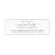 Chic, modern och enkel returadressetikett för svart och vitt bröllop med den framtida texten Mr. och Mrs. i handskrivet manusgrafi i mörk elegant på vit bakgrund. Lägg bara till ditt namn och adress. Enbart designad för dig av Lycklig Dolphin Studio. Kontakta oss på happydolphinstudio@outlook.com om du behöver hjälp eller matchande produkter. Vi är lycklig för att hjälpa dig att göra bröllop till den vackraste dagen!
