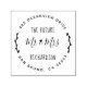 Frimärke är ett fantastiskt sätt i returadress att låta dina vänner och din familj veta att du är förlovad! Den här designen har "Mr & Mrs" och ditt efternamn i rustiskt, handskrivet typsnitt med din returadress i en kurva runt överkanten och grund till ge i en cirkelform. På båda sidor om frimärke finns det två känsliga grenar för att fortsätta med rundan. Klicka på "personalisera" för att lägga till ditt namn och adress.