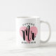 Personlig kaffe mugg för framtidens Mr. (eller triom du vill vara det) har ett modernt svart skript med anpassningsbarnas efternamnstext och en rosa bakgrundsbild av hjärtat.