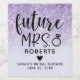 Fira din kommande bröllop med dessa lila glitter "Framtidig fru" vinetiketter som visar ditt framtida efternamn.