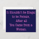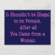 I rosa står det: "Det borde inte vara olagligt att vara kvinna, när allt kommer omkring kom du från en kvinna."