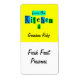 "Från köket av", efteretikett med roligt anpassningsbar och söt kitschy brev mot färg block av blått, grönt och teal på gult och vitt och anpassningsbar brev.
