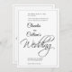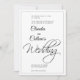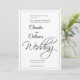 En bröllopsinbjudan som innehåller ett livligt skript kalligrafi för titlar med ett litet underskattat versalserif-teckensnitt för kroppen. Den här inbjudan har ingen bakgrund och kan anpassas genom att lägga till en färg eller en bakgrund.