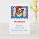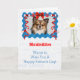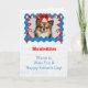 Roligt kort med hund eget hårigets väns foto och namn på framsidan och det personliga meddelandet inuti. Detta görs i hund av roligt i rött och blått för djurälskarn.