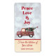 En personlig som säger från köket, tillverkad med kärlek. Texten längst upp säger: Peace Kärlek & Joy. Bilden är en söt liten liten leksak lastbil med God jul-hand som målats på sidan med guld. Att bära en dekorerad Julgran i ryggen. Bakgrunden är ett silver-bäckenet mönster.