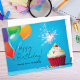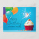 Önska glad födelsedag till dina elever med detta personliga vykort. Födelsedagscupcake med ballonger och handskrift och modern typsnitt. Tomt baksida vykort för att skriva ett meddelande.