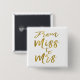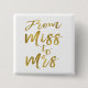 Från Miss till Mrs Möhippa Gold Foil Script och White Background Button för en modern och Elegant Möhippa.