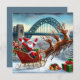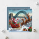 Tomte och hans renar landar på en snöig kaj, med Tyne Bridge gnistrande i högtidsljus.