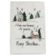 "Från vårt hem till ert.. God jul." Jag ritade en enkel scen för det här Helgdag-kortet som visade två klassiska småhus på en vinterscen. Trä på sidhåll, rök från skorsten, gräs träd på snöstranden backe och stjärnor i himlar. "Fred på jorden, Goodwill to manar" Pam Elifritz