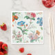 Based on a French floral design from 1830, garden flowers on a white background including blue forget me nots and orange nasturtiums.