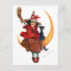 En annan charmerande vintage Halloween-kort med en rolig häxa och hennes svarta katt på ett äckligt måne, målad av den amerikanske bildaren Frances Brundage.