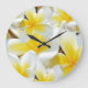 Frangipani, Clock, är Söt White and Gult Frangipani Flowers in a Cluster, https://www.zazzle.com.au/naturalcauses
