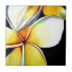 med original- konstdesign från akvarellmålning av Sacha Grossel av tropisk gult och vit med blommor för frangipanien för limefruktgröntviktig i slut fokusera, makrostil. Denna ljusa, färgglada blom- botaniska design är som påminner om av sommar, surfakultur, hettväder och att vara nära stranden.