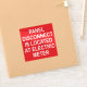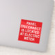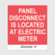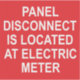 Ett klistermärke för elektriker att märka elektriska fjärrpaneler. Den röda dekalen med vit text säger: "PANEL DISCONNECT ÄR PLACERAT PÅ ELEKTRISKA METER."