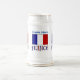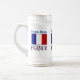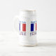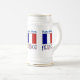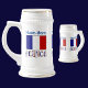 Personlig ölmugg eller mugg med den franska flaggan och ordet FRANKRIKE under i bokstäver färgade med den franska trikoloren. Ovan finns en plats för ett namn eller någon annans, så att du kan skapa en present eller en personlig look. Bra för Bastille-dagen, familjeåterträffar, resegrupper och klubbar. Vacker mors dag- eller fadersdag-present. Omfattande husvärmningspresent.