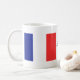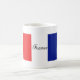 En kaffemugg med flagga av frankriken på varje sida av den.