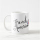 Fransk American Entwed Hearts Mugg. Oavsett om du har Fransk, eller kom från Frankrike, eller om du och den andra halvan är Fransk och amerikan! Det här är en skript teckensnittsdesign, med två invändiga hjärtan med amerikanska och Fransk flaggor, och texten: Fransk American.