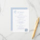 Fransk Blå Bröllopsinformationskort med elegant hydrangea-konst och tidlös serif-typografi — det perfekta kuvertet för att dela information om boende, klädkod och firande med stil.