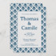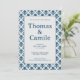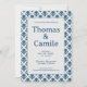 Inbjudan dina gäster i tidlös stil med den här fullkomligt anpassadets bröllopsinbjudan, med en Fransk tapestry-inspirerad design i blå blomning på en benvit bakgrund. Framsidan har en fet rektangulär vit inläggning som visar detaljerna i personligen bröllop i elegantens blå typografi. Genom att samordna utformningen på båda sidor blandar den klassiska europeiska konsten med en ny palett i contemporary färg - perfekt för ett modernt men sofistikerat firande.